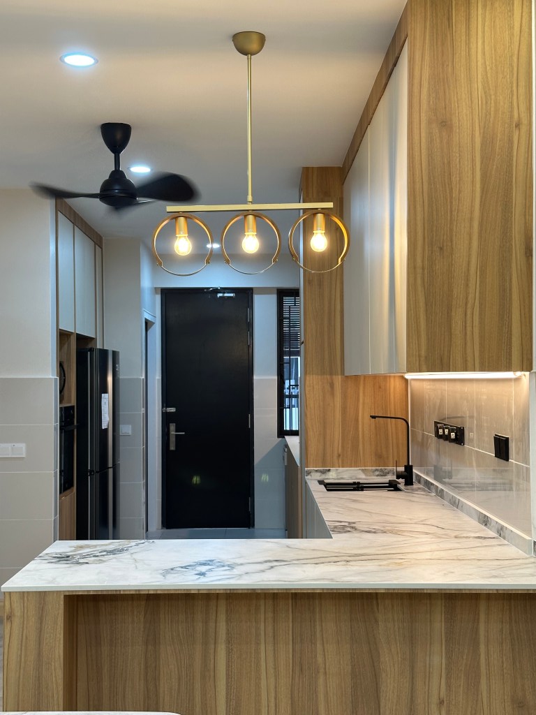 Kami memberikan jaminan 6 bulan – 1 tahun bergantung pada terma dan syarat. Harga kami mengikut jenis material, saiz dapur dan design.